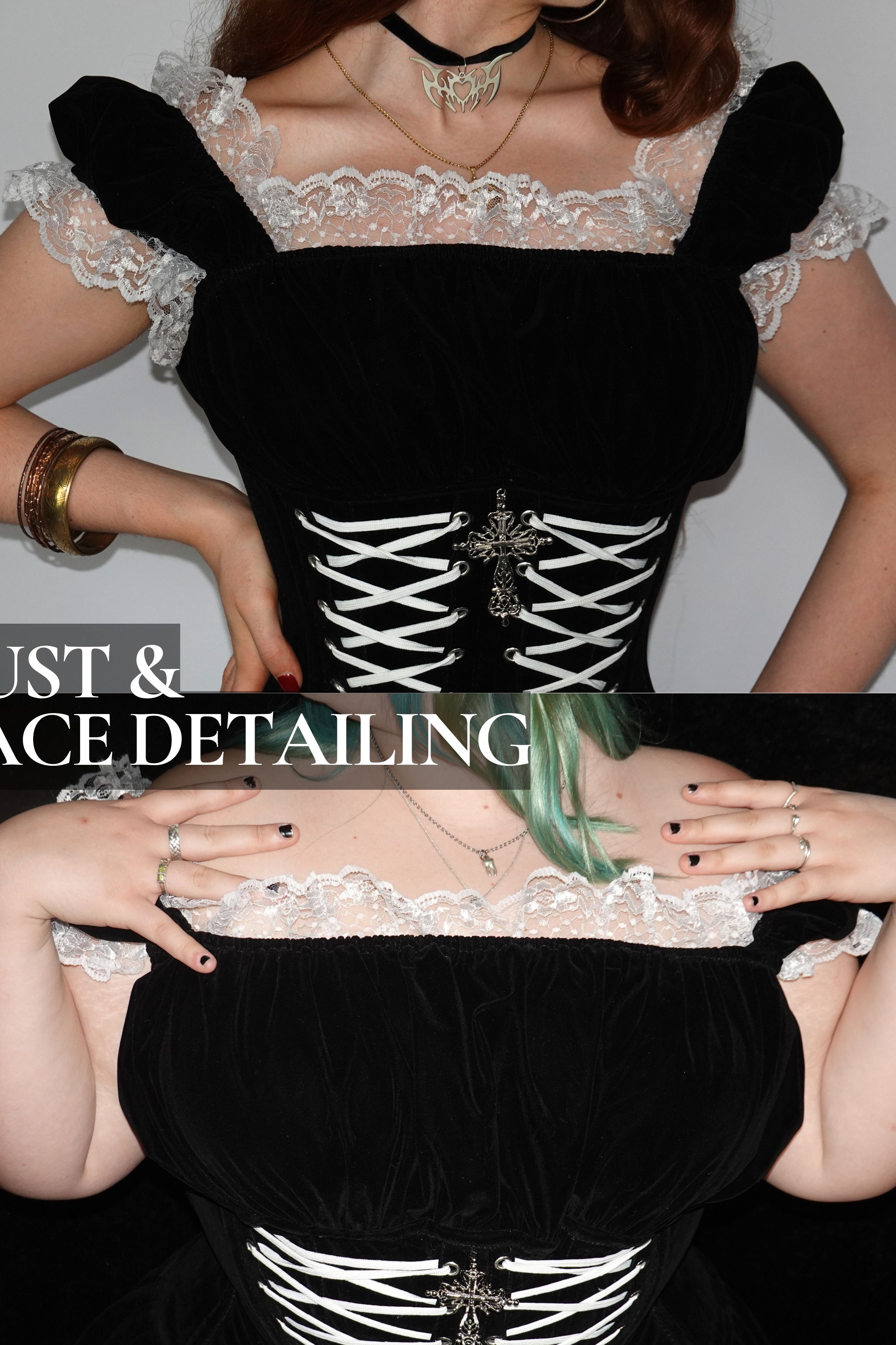 Love this dress so hard, it fits me so well 🎀💥 the ribbon makes it so you can tighten or loosen as much as you was while still giving you such a flattering figure !! And omg, the material isn't itchy at all, I recommend this product so hard !! 💫💫