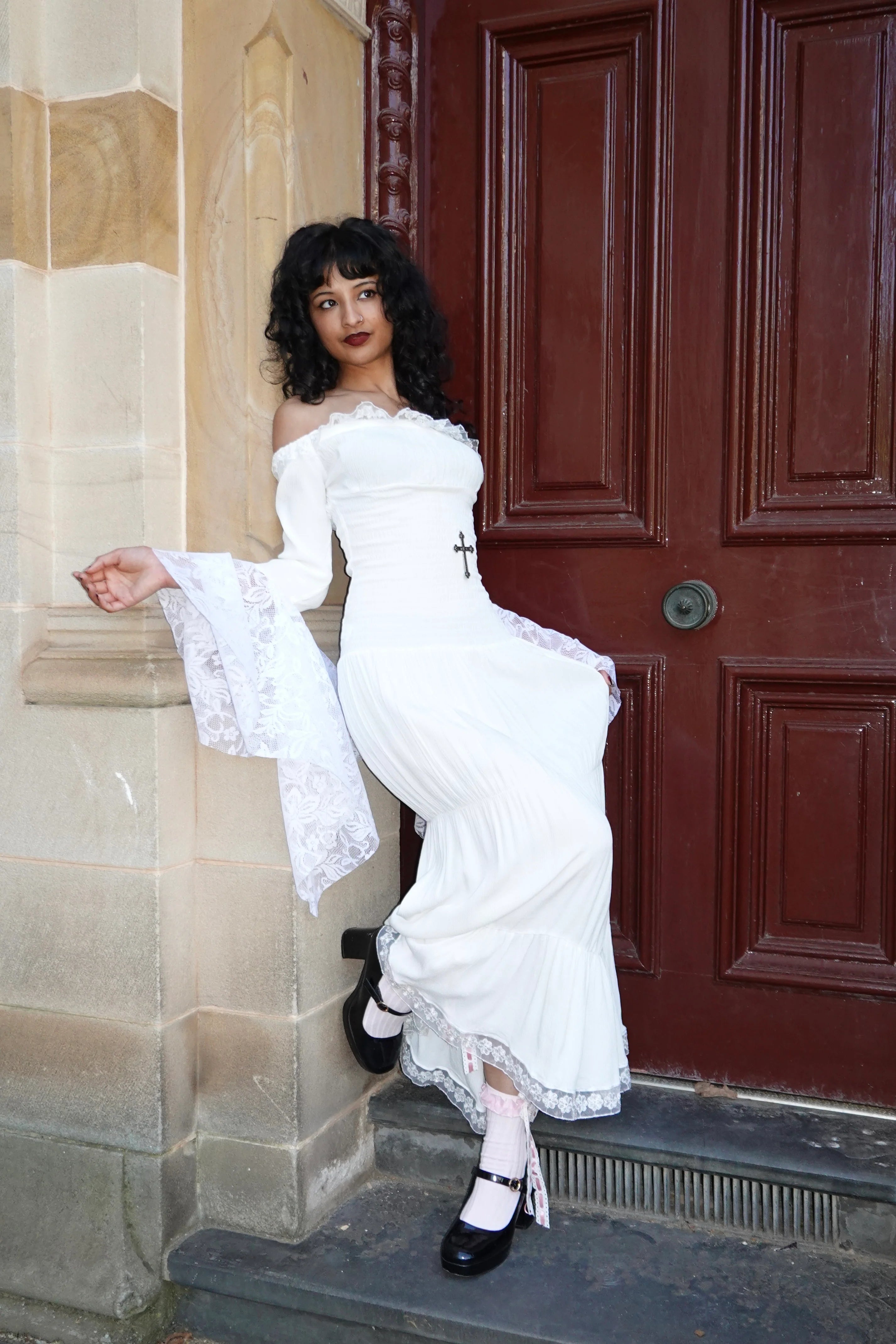 It began with one person, a sewing machine, and a vision to bring something different to the alternative fashion scene. Our founder and designer, Stit, is a self-taught seamstress who turned a lifelong passion with sewing, pattern-making, and fashion into the vampy + whimsical brand FM2U is today. Having been born and raised in India, she grew up surrounded by skilled artisans and tailors, nurturing a deep love for fashion and craftsmanship. India, celebrated for its exquisitely made saris, traditional attire, and mastery of hand beading and embroidery, has always been a place where artistry and textiles intertwine, shaping her appreciation for detail and design.