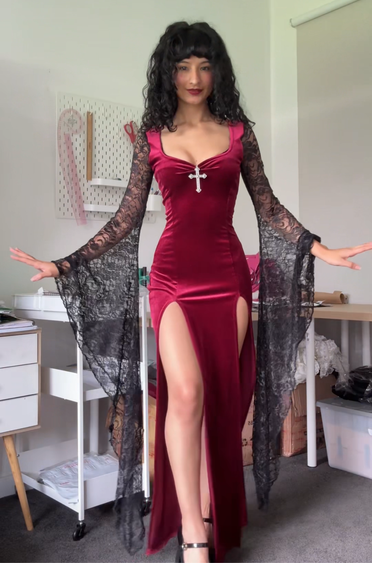 In March of 2024, Stit began sewing and drafting the first samples of what became the “Morticia” Collection. She taught herself patternmaking and devoted hours each day perfecting her craft. Sometimes staying up sewing and pattern drafting until 2-3 am; purely out of love and passion for the craft. At the time, each order was sewn by Stit in her sewing room at home (in Adelaide, South Australia).
