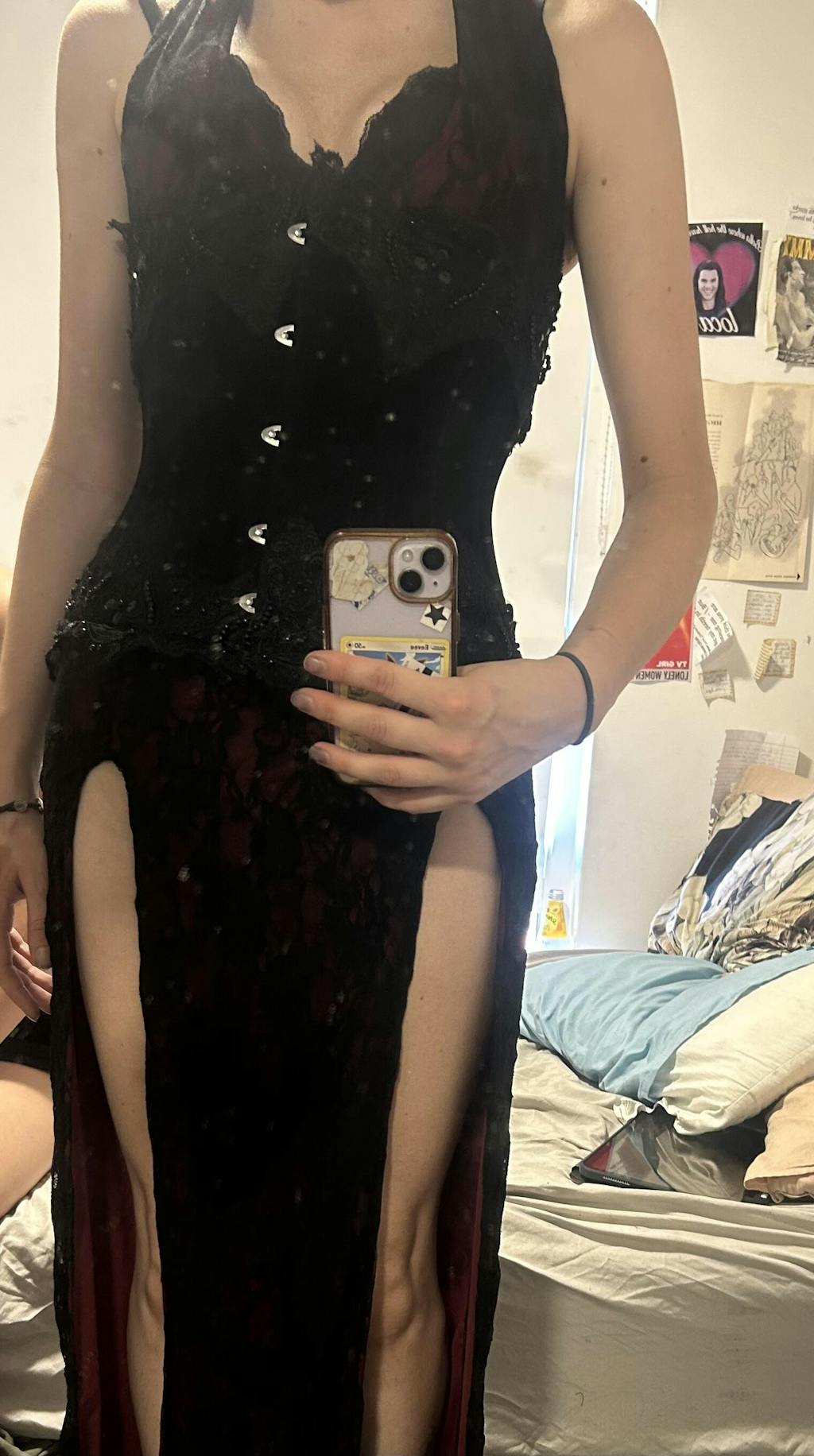 absolutely STUNNING dress, its my favourite thing i own right now ♡ i got the size large which fits me well but i need some help getting it on since the bust isnt stretchy, but i am absolutely in love with the dress i wear it whenever i can !!!
