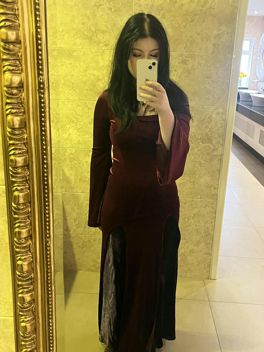 absolutely STUNNING dress, its my favourite thing i own right now ♡ i got the size large which fits me well but i need some help getting it on since the bust isnt stretchy, but i am absolutely in love with the dress i wear it whenever i can !!!